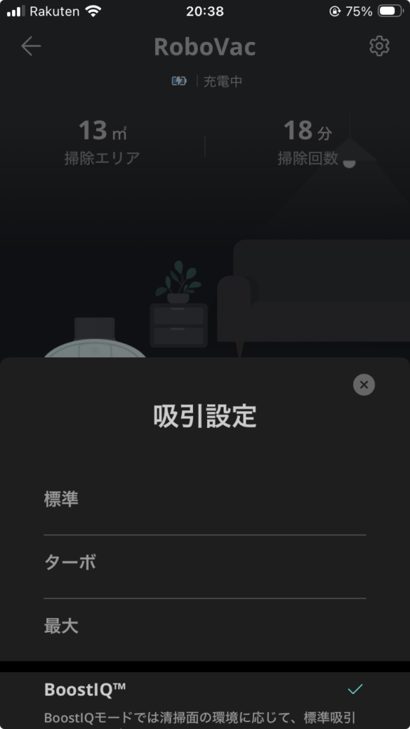 ・吸引設定の変更(吸引の強さ。基本は標準に設定されている)