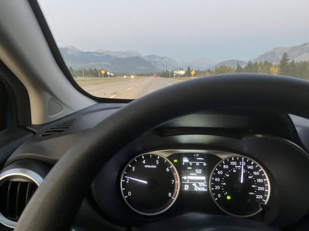 カナディアンロッキーからカルガリー市内へ向かった走る時は